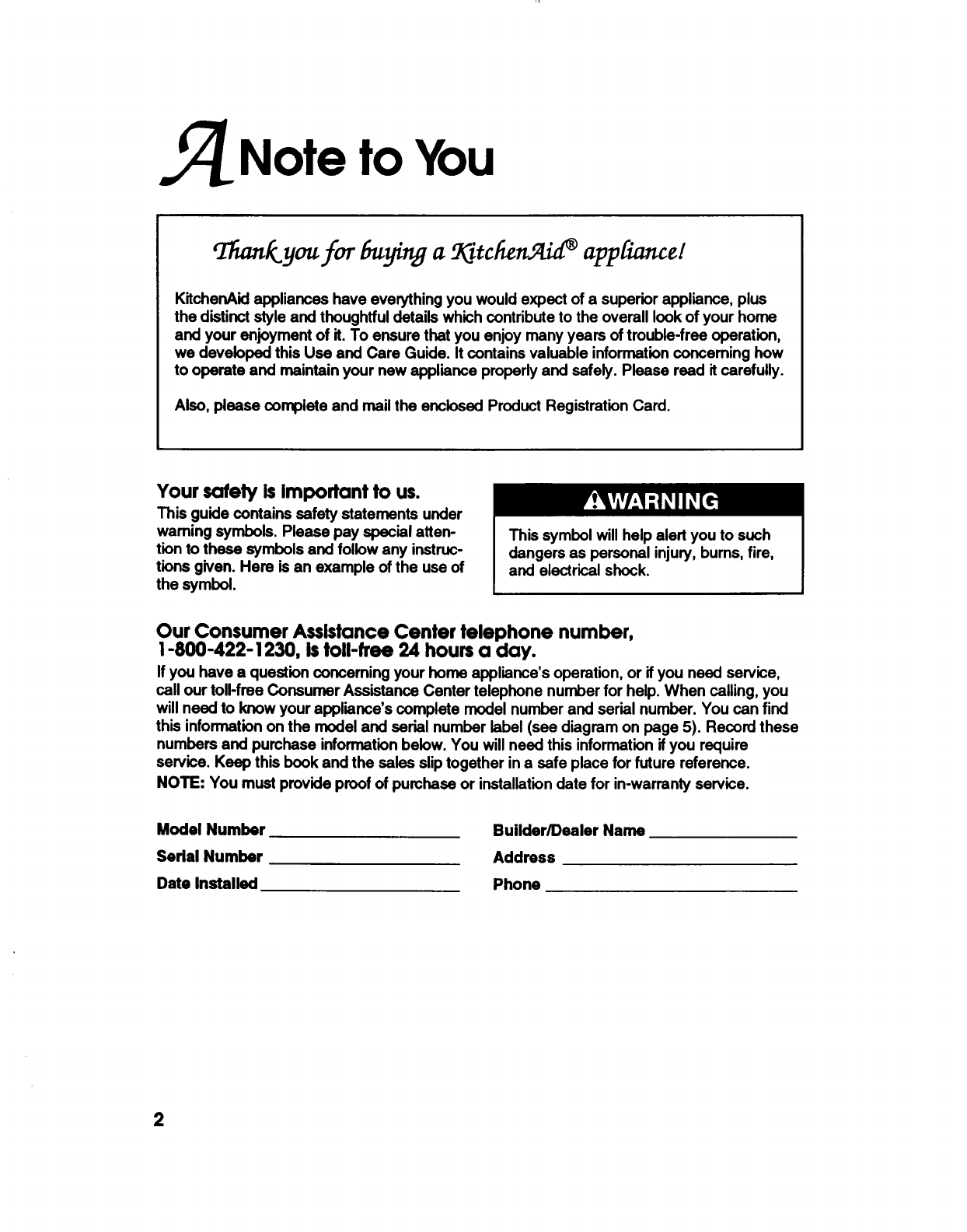 no KitchenAid Refrigerator 2308392 Manuale Utente